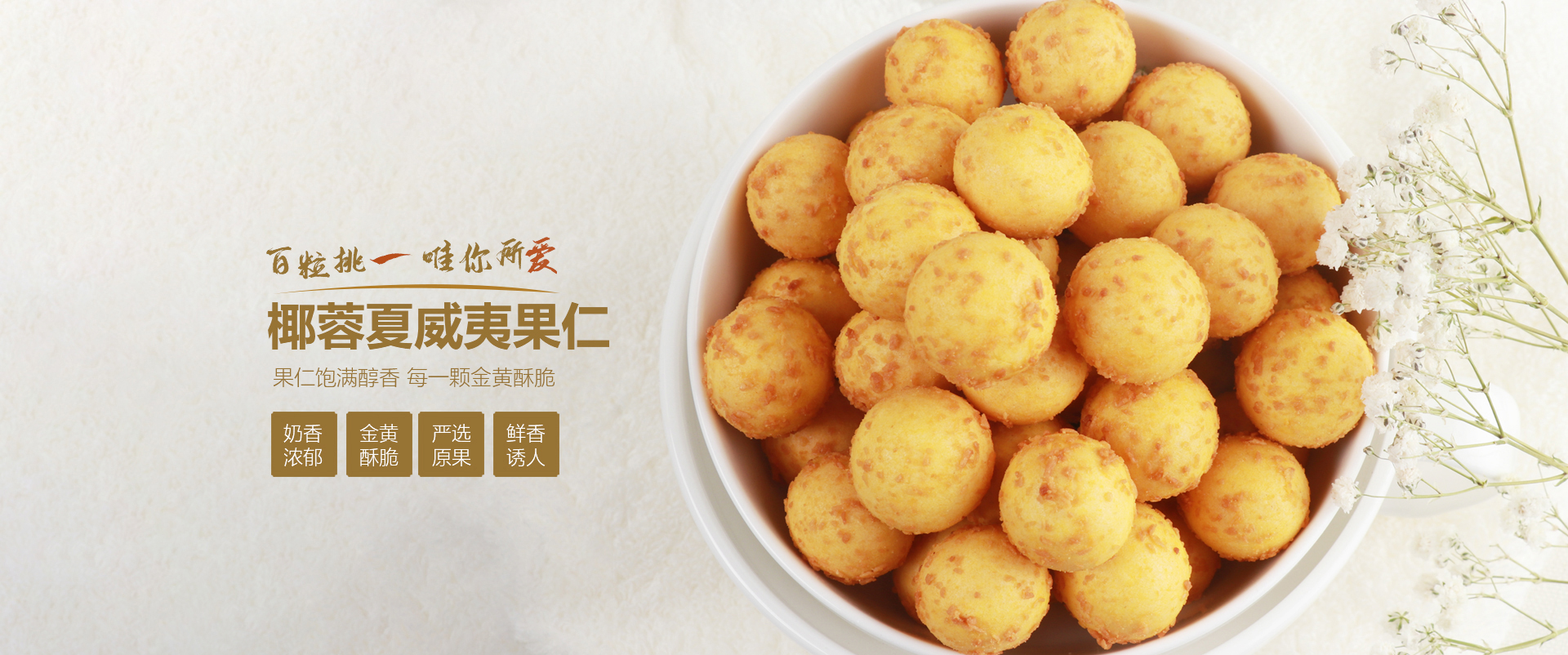嚴選原果,均勻飽滿,酥脆微咸,入口香脆濃厚,淡鹽酥嫩,低溫烘焙,果仁飽滿,自然清香,果仁飽滿醇香,裹衣奶香酥脆,附著外面的椰蓉鮮香誘人,每一-顆金黃酥脆