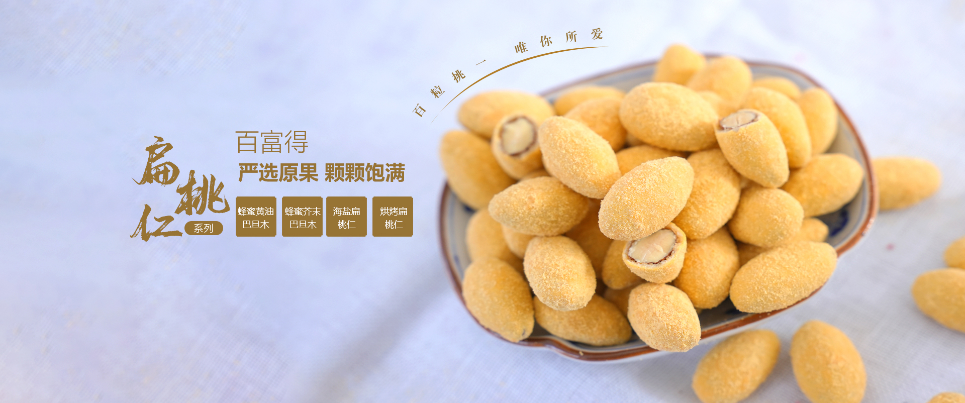 威海百富得食品有限公司成立于2000年,是一家及研發(fā)、生產(chǎn)和銷售于一體的堅果制品深加工企業(yè)。經(jīng)過二十多年的發(fā)展,公司建立了一整套完善的科技創(chuàng)新體系,質(zhì)量保證體系和市場營銷體系. 公司致力于堅果制品的創(chuàng)新研發(fā),融合國內(nèi)外飲食文化,在非油炸、輕烘焙基礎上研發(fā)了系列健康、美味、營養(yǎng)的特色產(chǎn)品,只為給消費者提供優(yōu)質(zhì),健康的美食享受。 主要為巴旦木、夏威夷果仁、花生及腰果四個系列多種口味堅果制品。